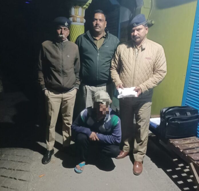 पुलिस थाना पुरुवाला की टीम गश्त व यातायात जांच के दौरान राजपुर बाजार पहुँची। इस दौरान सड़क किनारे खड़े एक संदिग्ध व्यक्ति रजत शर्मा पुत्र श्री खतरी राम, निवासी गांव बनौर, तहसील पांवटा साहिब, जिला सिरमौर की तलाशी ली गई। तलाशी के दौरान उसके हाथ में उठाए कैरी बैग से 52 ग्राम चरस बरामद हुई।