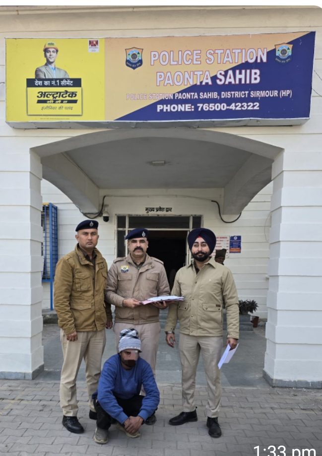 पुलिस थाना पांवटा साहिब में एक चिट्टा/समैक के मामले में रिपोर्ट दर्ज की गई है। पुलिस ने मुखबिर की सूचना पर बीरखान उर्फ अमित पुत्र श्री राणा निवासी गाँव अजीवाला डाकघर जामनीवाला तहसील पाँवटा साहिब जिला सिरमौर हि0प्र0 के पास से 8.17 ग्राम चिट्टा/समैक बरामद किया है। बीरखान उर्फ अमित के खिलाफ पुलिस थाना पांवटा साहिब में दिनांक 04-01-26 U/S 21-61-85 ND&PS ACT में अभियोग दर्ज किया गया है। मामले में आरोपी को गिरफ्तार कर लिया गया है जिसका माननीय अदालत से पुलिस हिरासत रिमाँड प्राप्त किया जा रहा है और पता लगाया जा रहा है कि इसके साथ अन्य कौन-2 लोग शामिल है।